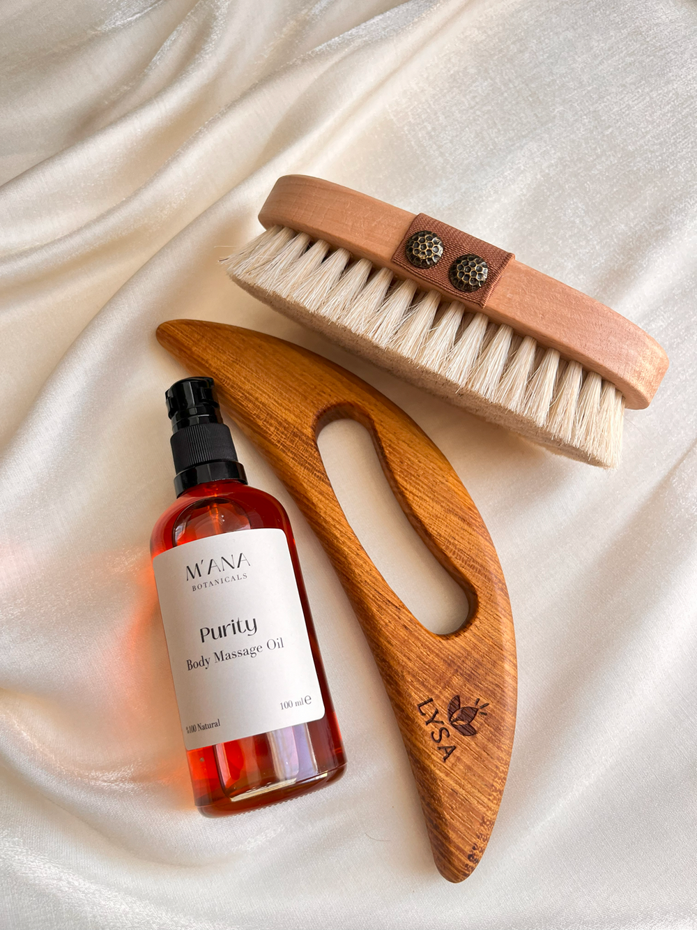 LYSA 3’lü Selülit ve Lenf Drenaj Bakım Seti, cildinizi sıkılaştırmaya, selülit görünümünü azaltmaya ve vücutta detoks etkisi yaratmaya yardımcı olur. Set; İroko Ağacı Lenf Drenaj Masaj Aleti, Doğal At Kılı Fırça ve Selülit Karşıtı Masaj Yağı ile evde profesyonel bakım deneyimi sunar.
